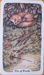 For example, in the classic Ten of Wands, a man carries ten wands by himself, as if it were a punishment. We do not see his face.