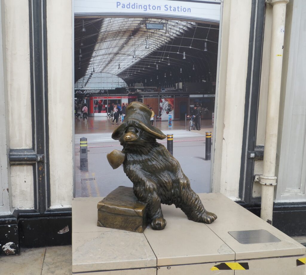 途中、パディントン駅で降りて、駅構内にあるパディントンの銅像を見つけ、