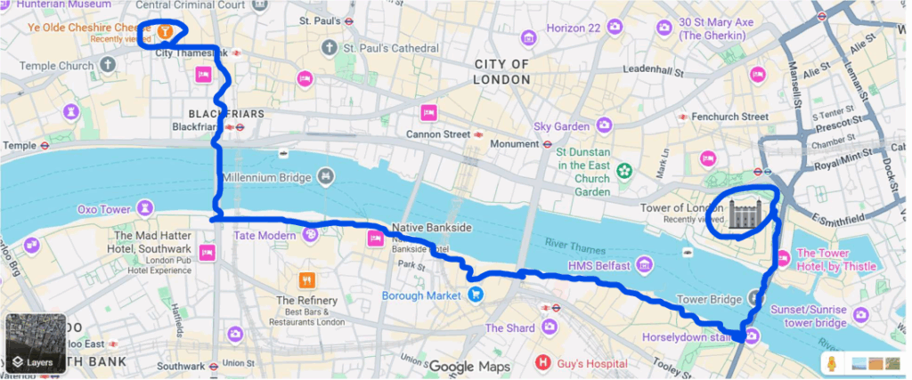 ロンドン塔のあと、Ye Olde Cheshire Cheese まで歩いてランチを食べに行きました。